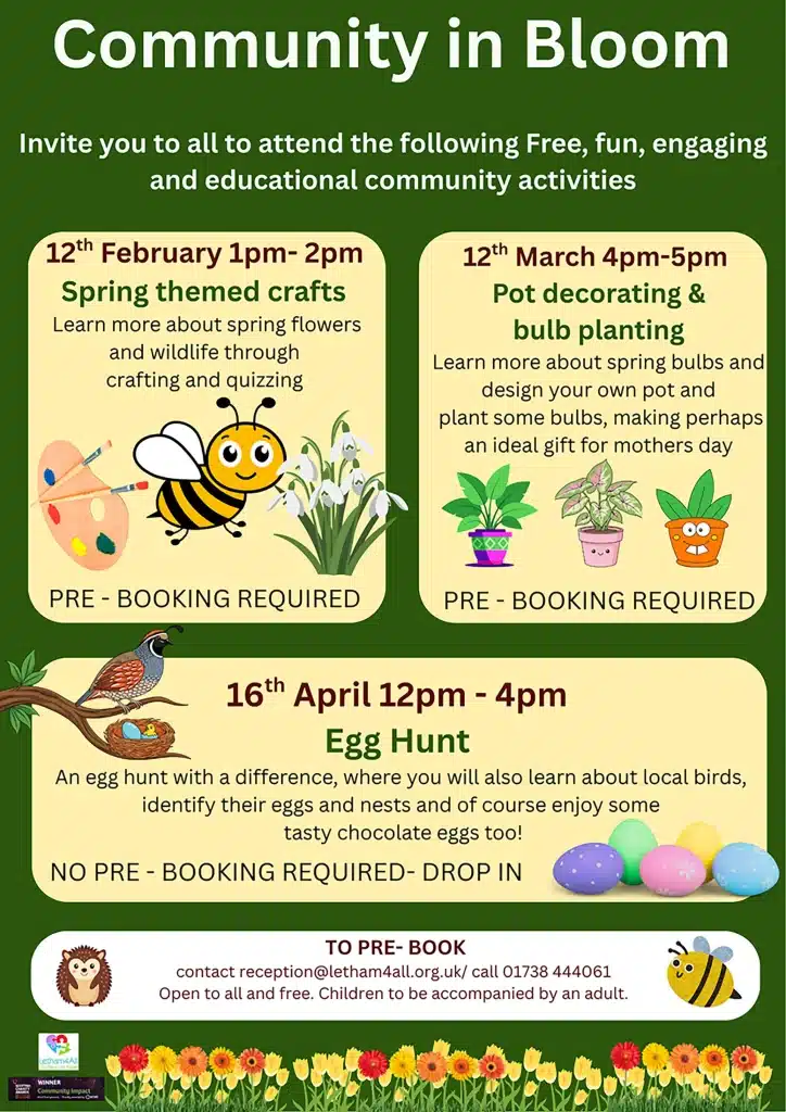 A new series of free community activities is set to bring colour, creativity and outdoor fun to local residents this spring. The “Community in Bloom” programme invites people of all ages to take part in a range of seasonal events designed to be engaging, educational and accessible to everyone.